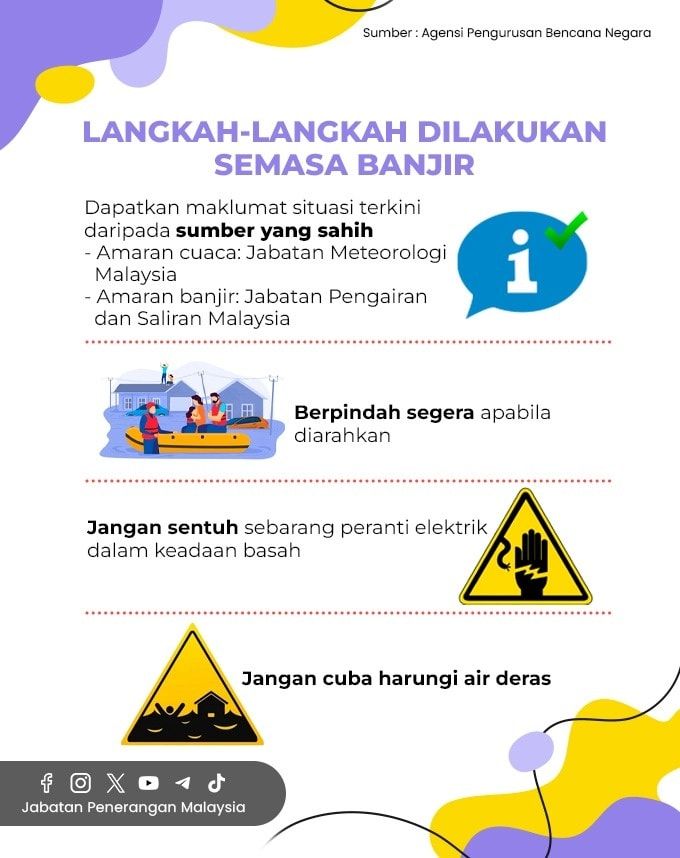 Berikut merupakan langkah-langkah yang perlu dilakukan semasa banjir.