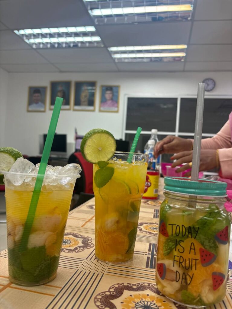 Tugasan : Menghasilkan MOCKTAIL iaitu sejenis minuman tanpa alkohol terdiri daripada campuran buah-buahan dan juga perasa yang bebas alkohol. Ramuannya terdiri daripada buah-buahan seperti tembikai, nenas, epal, oren, delima dan juga bahan yang berasaskan sayur.