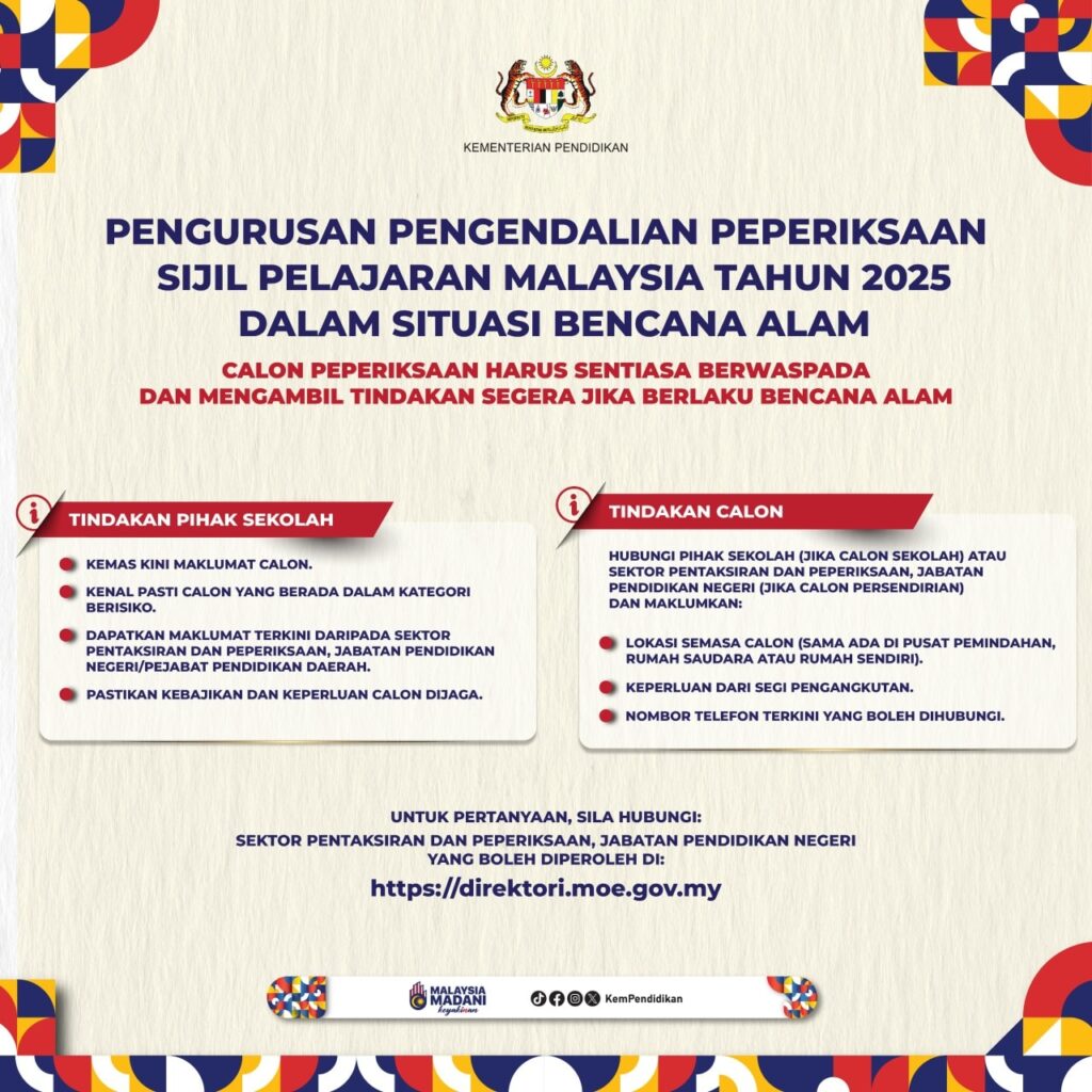 INFO KPM: Pengurusan Pengendalian Peperiksaan Sijil Pelajaran Malaysia 2025 Dalam Situasi Bencana Alam.